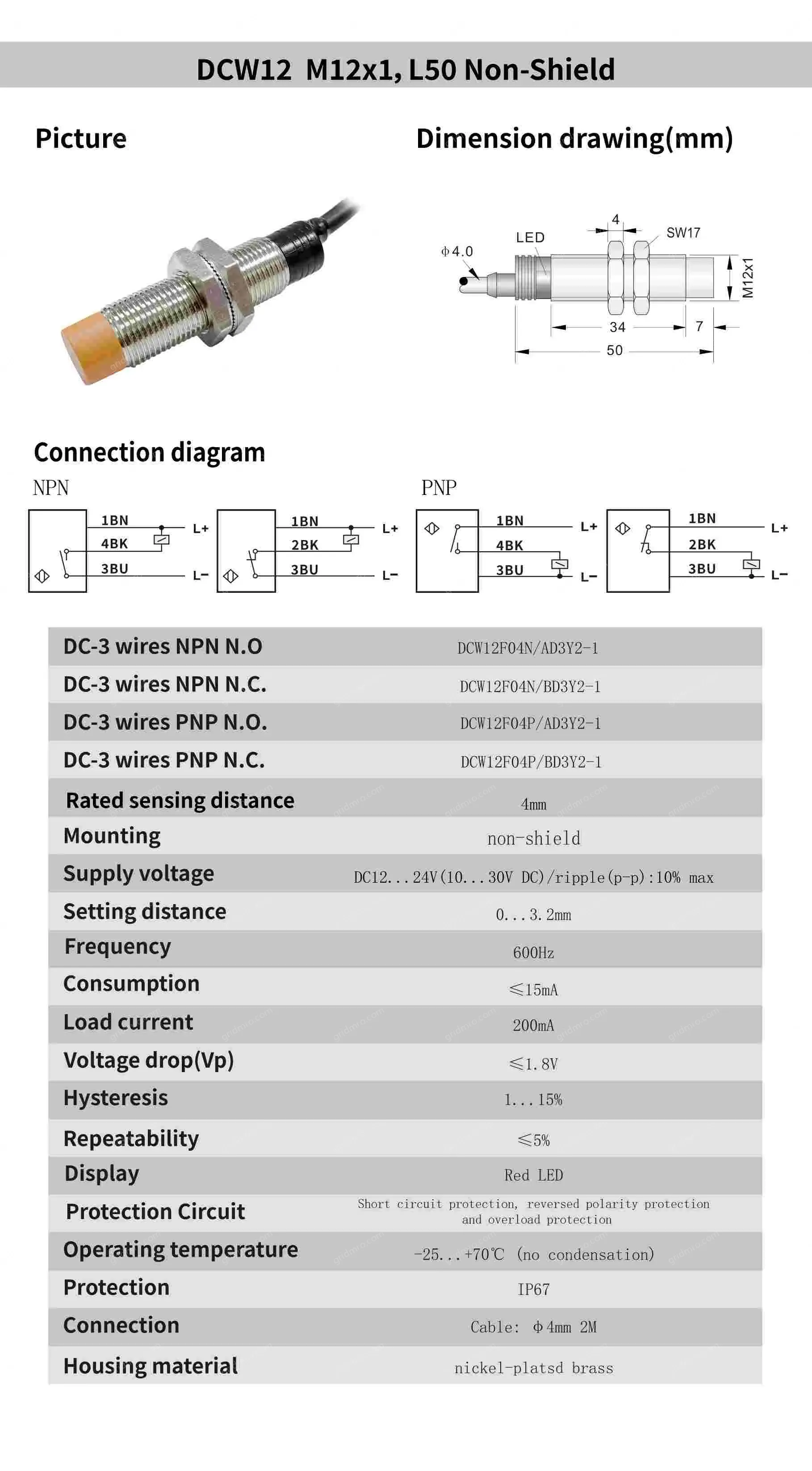 DCW12F04P/BD3Y2-1 PNP N.C. DC12-24V